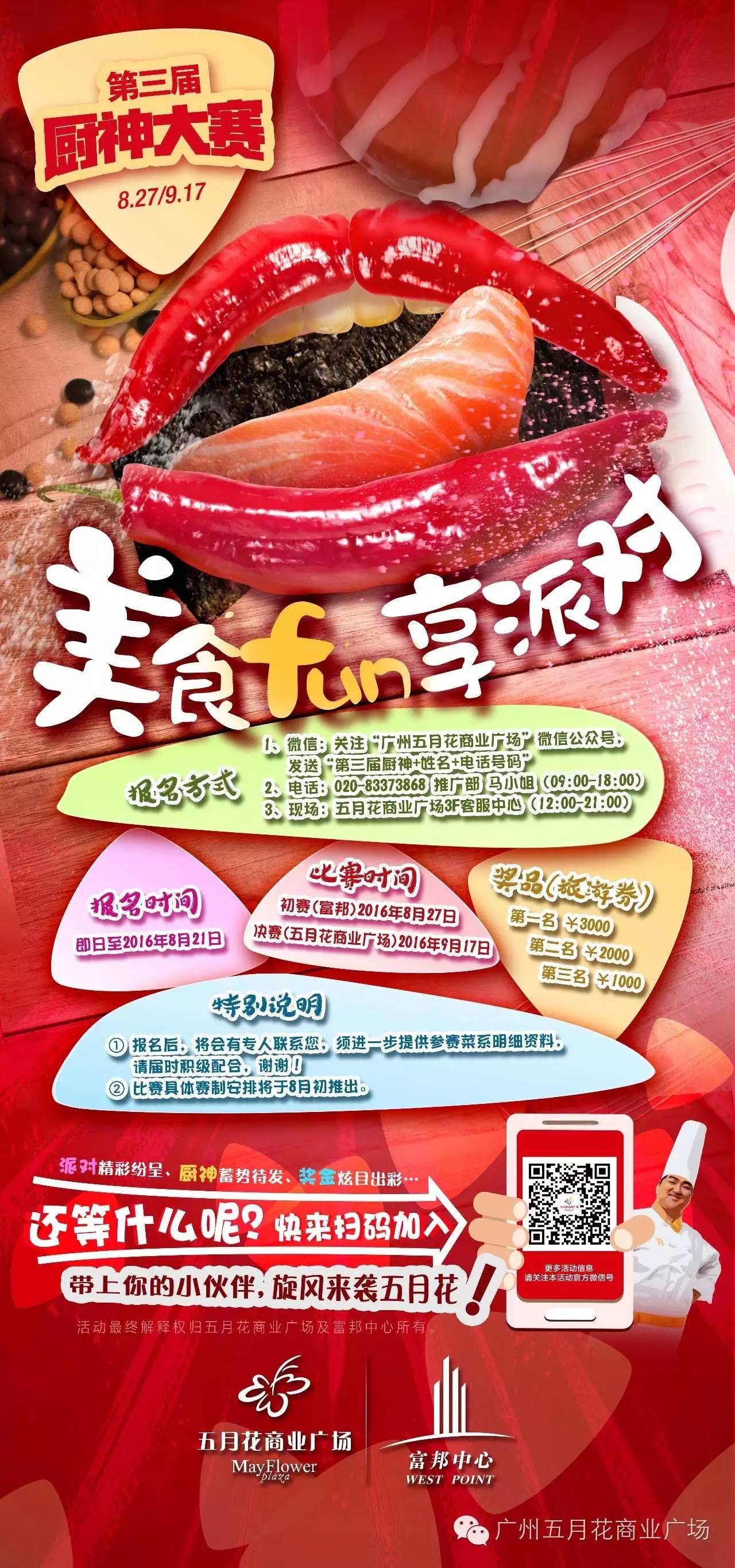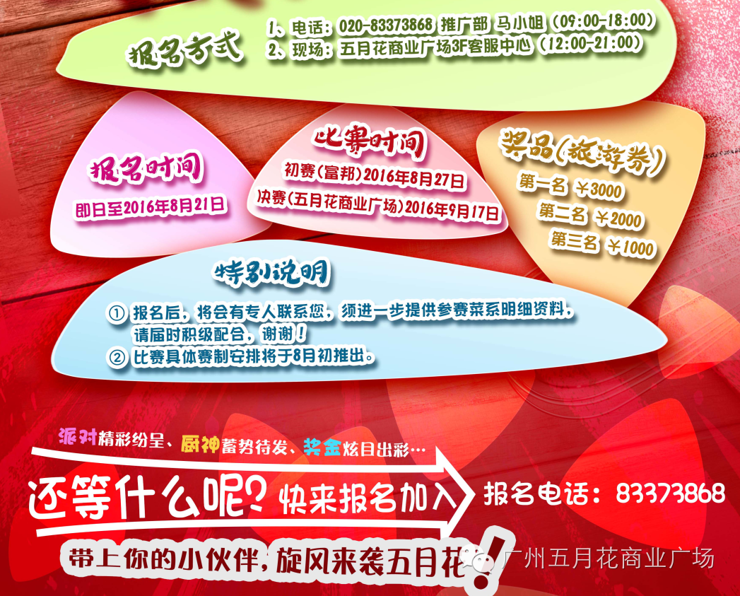 五月花厨神大赛不知不觉已经到了第三届,现在要招募全城厨神,不要顶级刀工,无需精湛厨艺,带着你的拿手菜,快来厨神大赛,美味等你比拼,大奖等你来战!