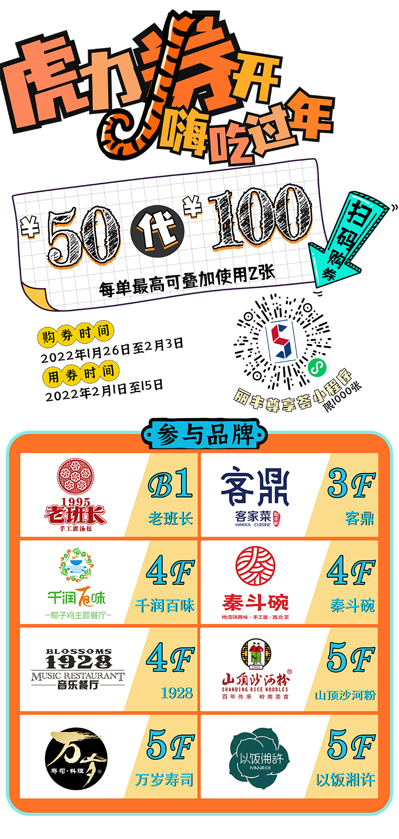 50元/100元餐饮无门槛券