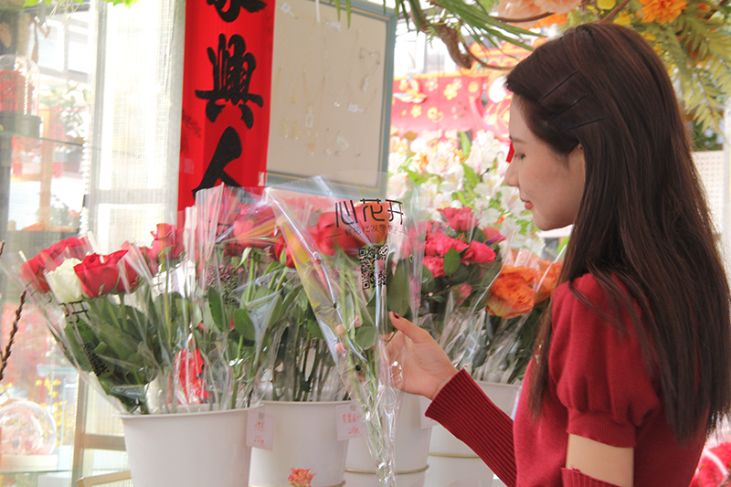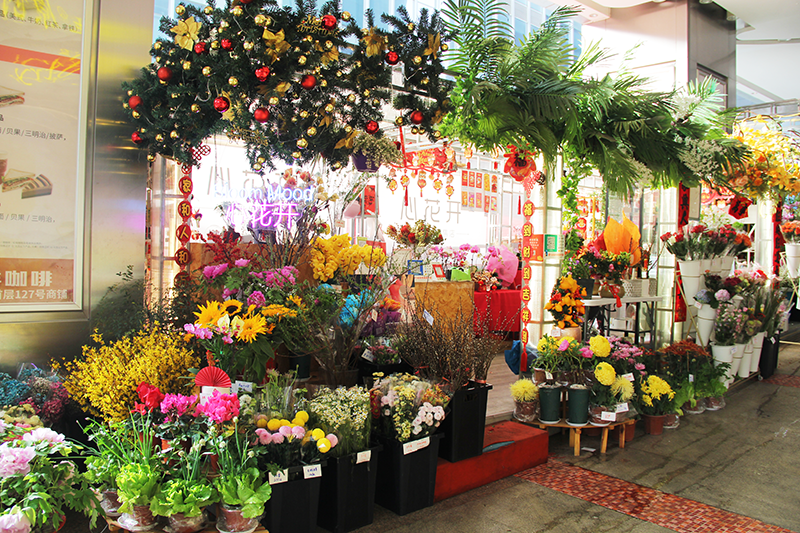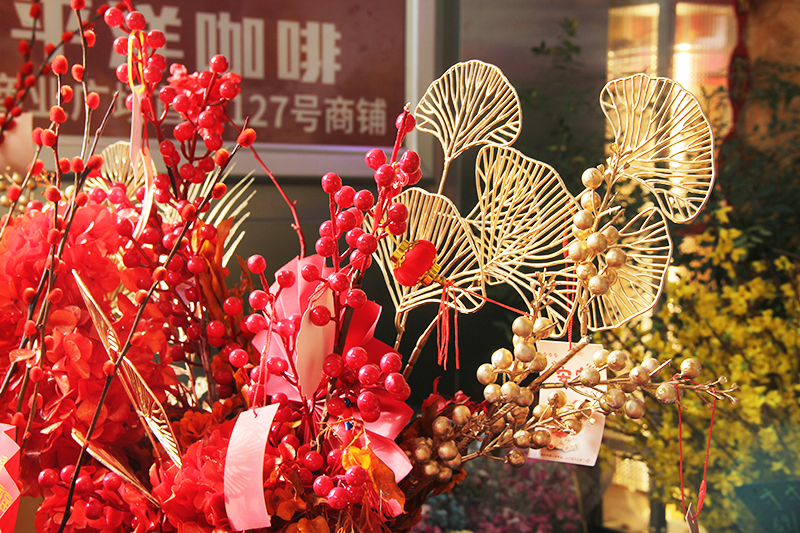 临近春节,迎春花街摊位更加的热闹
